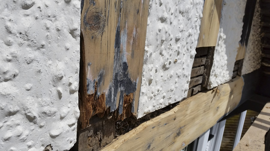 Last year I was working for some lovely folk in Stratford upon Avon, redecorating the exterior of their house. There were some relatively new wooden windows which were easy to deal with, but at the front especially there was quite a lot of old timber which had started to rot.